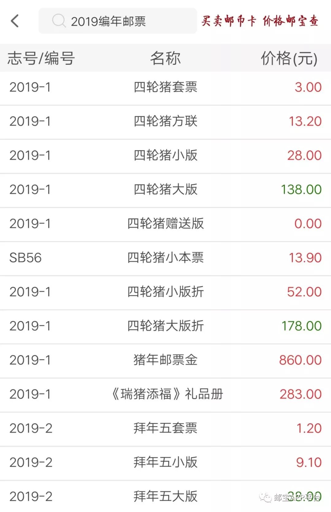 版票行情下跌,四轮猪大版价格上涨